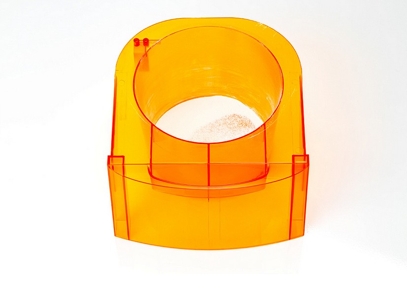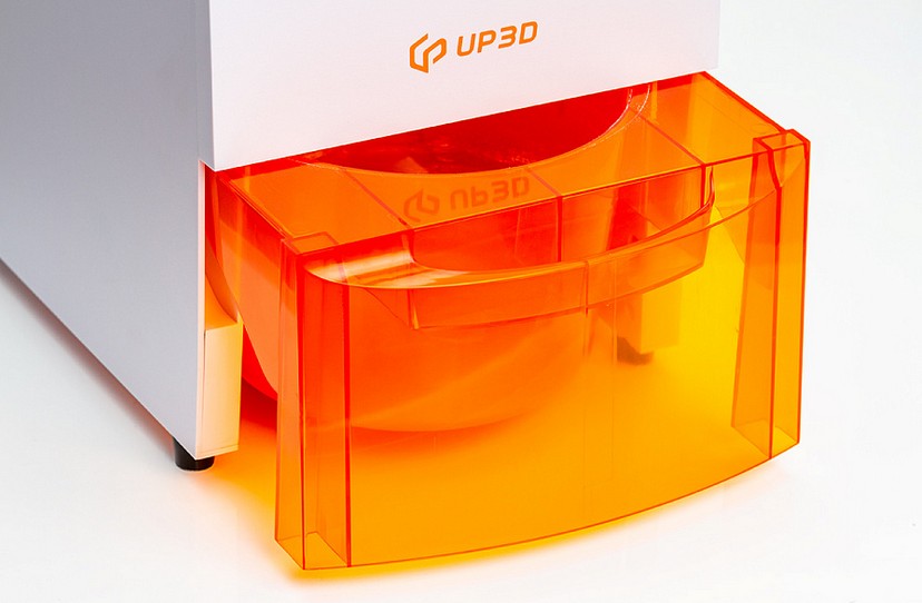 A fémház a klasszikus Up3D fehér színű, a porgyűjtő tartály pedig narancssárga műanyagból készült. Kis mérete, 47 cm magas és 25 cm széles, lehetővé teszi, hogy az íróasztalra helyezze, ahol jól fog kinézni anélkül, hogy elfoglalná a munkaterületet.