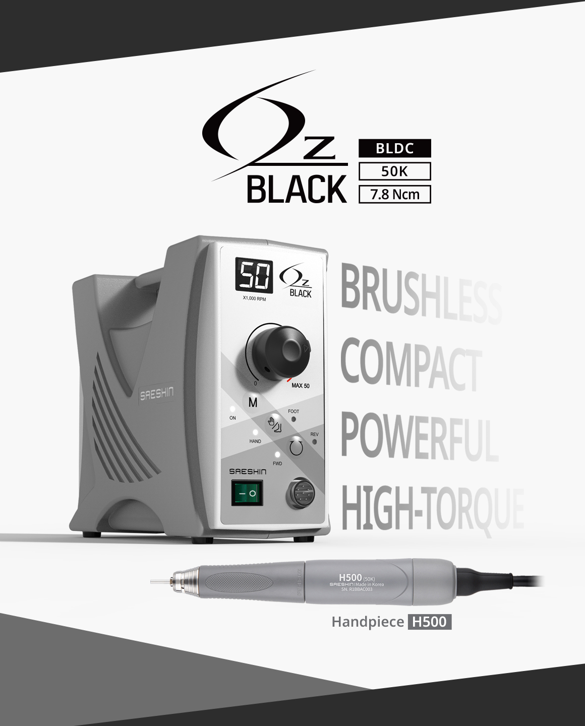OZ BLACK 50 000 fordulat/perc sebességű, kefe nélküli mikromotor